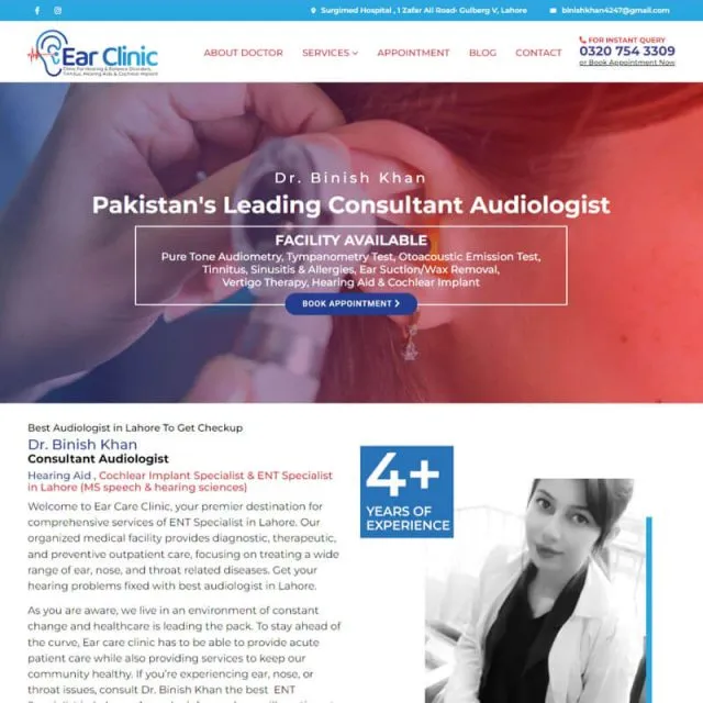Ear Clinic admin2025-03-08T17:15:30+00:00 0 January 2, 2024 WordPressPortfolio DetailsClient: Ear ClinicLocation:PakistanPortfolio URL:https://earclinic.pk/ShareFacebook Twitter LinkedIn Google + Email